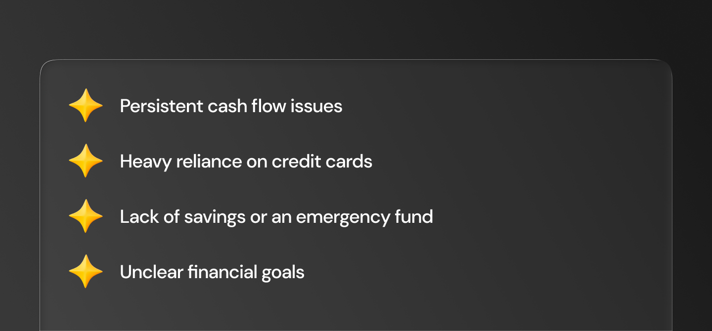 Tasha, a working professional, approached us feeling frustrated. Despite earning a consistent income, she found herself constantlyshort on cash. Her challenges included: